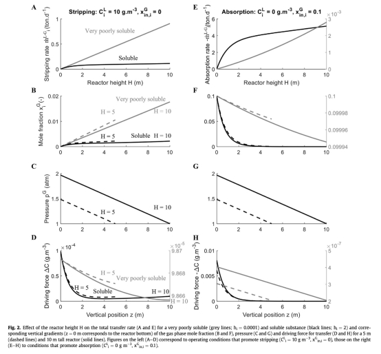 2. 氣體摩爾分?jǐn)?shù)沿反應(yīng)器高度的變化:幫助理解氣體組成梯度對(duì)傳遞速率的影響,來(lái)自圖2B和2F。