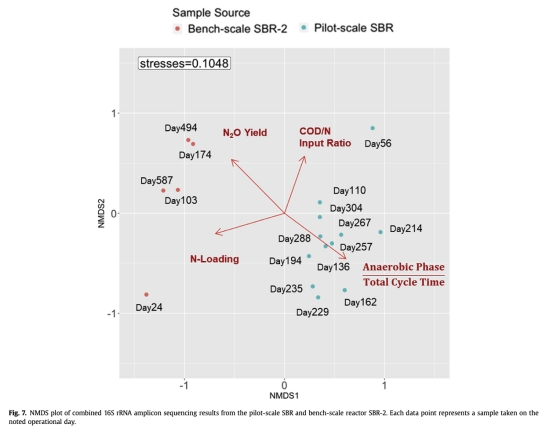 4. 機理關聯:將運行性能(N2O產率、脫氮效率)與微生物群落結構、碳源(PHA)代謝動力學進行關聯分析,闡明優化操作條件(短HRT、短厭氧/缺氧時間)提升工藝性能的微生物學機理。