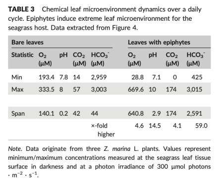 3. 海草雖然能利用HCO3-作為替代碳源,但效率低于CO2且能量成本更高。附生生物膜自身的光合作用還會與海草競爭無機碳。