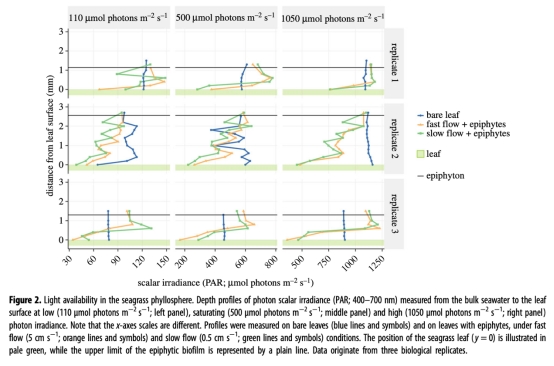 水流和附生生物生長對海草(大葉藻)葉際熱、光及化學(xué)微環(huán)境的影響
