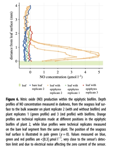 ? NO微傳感器:檢測到厭氧微區(qū)產(chǎn)生的植物毒性NO(3.9 μmol/L),為解釋附生生物致病機制提供新證據(jù)