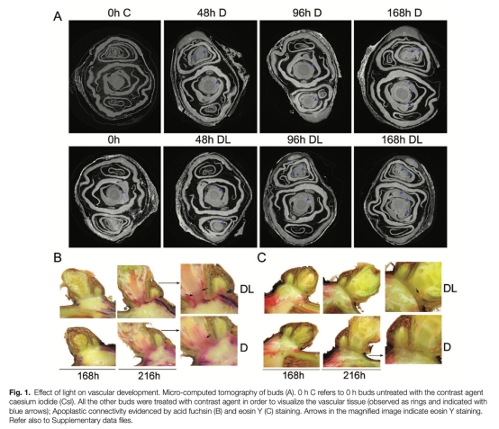 3. 芽爆發啟動后分生組織核心區優先氧合,且氧合過程不依賴原位光合作用(黑暗條件下仍發生),表明維管組織重建是氧合的主要途徑