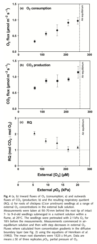 Root O? consumption, CO? production and tissue concentration profiles in chickpea, as influenced by environmental hypoxia