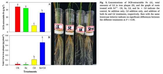 硒通過提升根的徑向氧損失增強鐵膜形成以減少水稻中的鎘積累