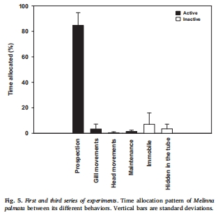 意義:直接揭示了M. palmata的核心活動模式。其將絕大多數時間(84.6%)用于表面覓食(Prospection),證明了它是一種專性的表面沉積食性動物,這決定了其生態功能的核心。