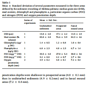 評估其沉積物再加工活動對表層沉積物主要特性、氧氣滲透深度和好氧細菌群落組成的影響。