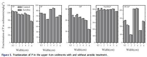 意義:好氧處理3天后,表層沉積物(0-0.5 cm)的NaOH-P(鐵鋁結合態磷)顯著增加,其他形態磷無變化。說明好氧促進Fe(II)氧化為Fe(III),增強磷的吸附固定,但該效應未延伸至深層。
