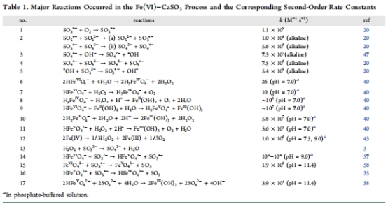 活性氧化劑:Fe(IV)和Fe(V)是主要活性物種,而非SO???或?OH;CaSO?通過直接(Fe(VI) + SO?2?)和間接(Fe(VI)自分解 + Fe(VI)/H?O?反應)途徑生成Fe(IV)/Fe(V)。