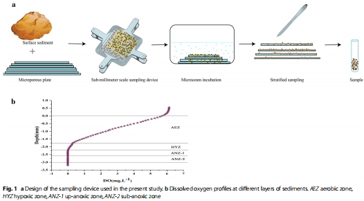 在本研究中,丹麥Unisense公司的氧微電極系統(tǒng)被用于原位測(cè)量沉積物柱的溶解氧(DO)垂直微剖面(方法部分2.3,數(shù)據(jù)見(jiàn)圖1b),這是劃分沉積物微層和解釋反硝化空間分異的基石。