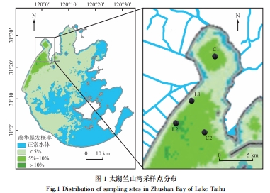 空間布點與采樣:在太湖竺山灣藻型湖區選取4個代表性點位(圖1),包括2個湖濱帶點位(L1, L2)和2個開敞湖點位(C1, C2),利用柱狀采樣器采集沉積物樣品(按2 cm間隔分層)。