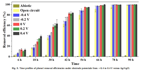 電極電位是調控降解效率的關鍵參數,更正的電位(0V至0.4V)能顯著提升苯酚降解速率。