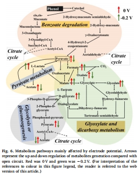電位調控的深層機制在于上調了包括苯甲酸降解、丙酮酸代謝在內的四條核心代謝途徑,改變了中間代謝產物的分布。
