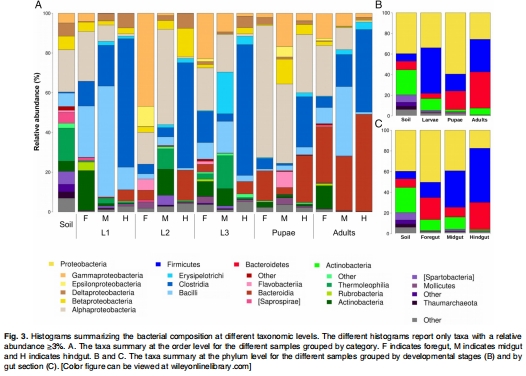 發(fā)育動態(tài):腸道菌群是否在胚胎后發(fā)育階段(幼蟲、蛹、成蟲)之間穩(wěn)定維持,還是會因昆蟲發(fā)育(如變態(tài))而發(fā)生重大的菌群更替?