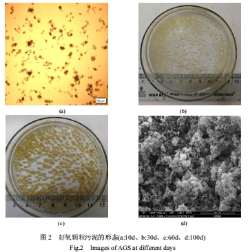 數據:培養過程中MLSS從4630 mg/L(初始)波動至4356 mg/L(第60天),SVI從68改善至36,顆粒平均粒徑從1.3 mm增至3.2 mm。掃描電鏡(圖2d)顯示AGS結構緊密,以短桿菌和球菌為主。