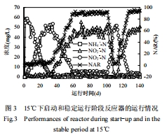 數據:R1的NAR較低(NO3--N生成多),R2和R3的NAR均達90%左右,且幾乎無NO3--N產生。大粒徑AGS(R3)的NH4+-N去除率略低于小粒徑。
