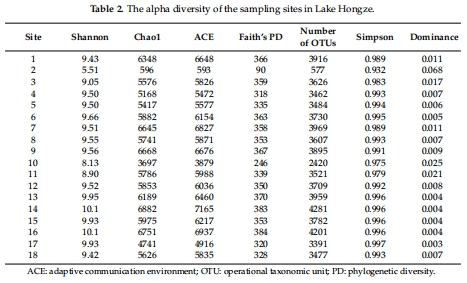 微生物群落α與β多樣性數(shù)據(jù)(來源:Table 2)