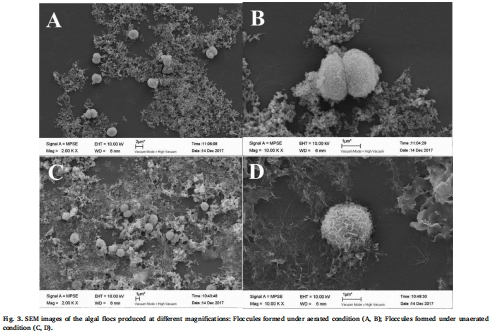 數據:SEM圖像顯示通氣EC形成納米級不規則凝集物(Fig. 3A-B),無通氣EC形成片狀微米級凝集物(Fig. 3C-D)。