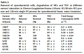 A novel electro-coagulation-Fenton for energy efficient cyanobacteria and cyanotoxins removal without chemical addition