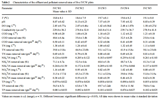 IVCWs高效可行:所有IVCWs均能有效處理低C/N比河流水,TN和TP去除率分別達46.8%和62.3%,出水達IV類標準,適用于工程化應用。