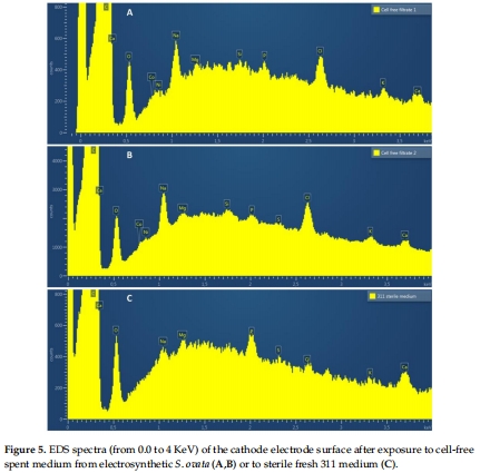 數(shù)據(jù):EDS顯示上清液暴露的陰極表面有鈷(X射線計(jì)數(shù)50-120)和鎳(60-140),無菌介質(zhì)中未檢測(cè)到。
