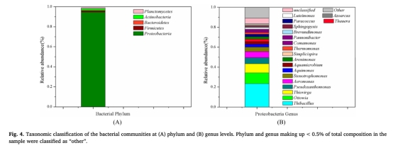 4 微生物群落數(shù)據(jù),來自Fig. 4。研究意義在于識(shí)別主導(dǎo)菌屬如Thiobacillus、Ottowia、Thiovirga,這些菌參與硫化物和亞硝酸鹽去除,Ottowia可能與N2O產(chǎn)生相關(guān),支持微生物機(jī)制解析。