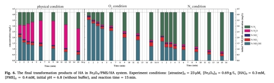 本研究旨在評(píng)估羥胺(HA)在Fe3O4/PMS系統(tǒng)中對(duì)阿特拉津降解的作用,包括HA作為還原劑或活化劑的主要角色,分析不同通氣條件下HA轉(zhuǎn)化產(chǎn)物(如N?O、N?、NO??、NO??),通過(guò)X射線(xiàn)光電子能譜(XPS)確認(rèn)表面Fe(III)/Fe(II)循環(huán),并探索Fe3O4/PMS/HA多相系統(tǒng)的反應(yīng)機(jī)制。