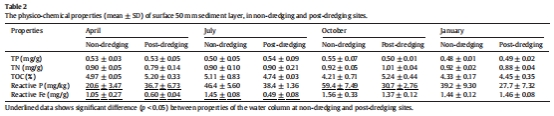 研究意義:OPD是反映沉積物表層氧化還原狀態的關鍵指標。研究發現疏浚后OPD在4月和1月有所增加(分別增加0.4 mm和0.6 mm),說明疏浚改善了沉積物表層的氧化環境,這有利于鐵氧化物形成,從而吸附固定磷。