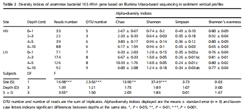 高通量測序:對細菌16S rRNA基因的V3-V4區進行Illumina Miseq測序,從序列中篩選出屬于Brocadiales目(anammox細菌)的序列,分析其群落組成、多樣性和相對豐度(圖2d, 3, 4)。