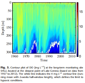 表征氧氣消耗的空間分布和變異性:評估SOU、Fred和WCM在日內(nèi)瓦湖不同深度的貢獻。