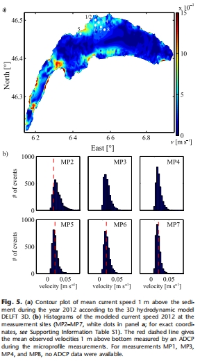 摘要指出,湖泊和水庫中的低氧濃度是持續(xù)的環(huán)境問題,尤其受人類活動和氣候變化影響。氧氣消耗過程尚不完全清楚,且現(xiàn)有模型基于有限野外觀察。本研究在日內(nèi)瓦湖進行野外測量,旨在量化控制缺氧層氧氣消耗的三個基本過程(SOU、Fred、WCM)及其對TOD的相對貢獻。使用微剖面測量、沉積物核心數(shù)據(jù)、聲學(xué)多普勒流速剖面儀(ADCP)和流體動力學(xué)建模,確保測量在典型水動力條件下進行。結(jié)合長期監(jiān)測數(shù)據(jù),評估了SOU和WCM的相對重要性。結(jié)果顯示,SOU和WCM隨深度減少至中等深度,但TOD在中等深度以下增加 due to 沉積物面積與水體體積比(α)的增加。這種垂直模式由(1)湖泊形態(tài)(α增加)和(2)水柱有機質(zhì)礦化隨深度減少共同驅(qū)動。發(fā)現(xiàn)通過一個模型解釋,該模型將氧氣消耗分為指數(shù)減少組分(代表快速降解有機質(zhì))和恒定背景組分。