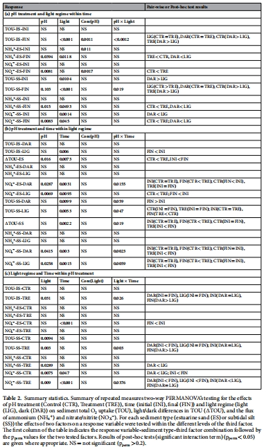 數據分析:采用重復測量PERMANOVA統計模型,分析pH、時間、光暗 regime 對通量的影響(表2)。