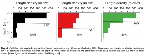 細(xì)菌豐度:通過(guò)熒光原位雜交(FISH)量化電纜細(xì)菌絲狀體長(zhǎng)度密度(數(shù)據(jù)來(lái)自圖4、表2)。