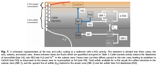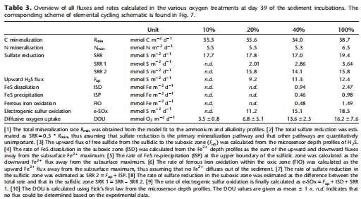指示硫循環(huán):SO?2?剖面相似,但H?S通量隨O2增加而上升(表3),證明電纜細(xì)菌競(jìng)爭(zhēng)性抑制硫酸鹽還原。