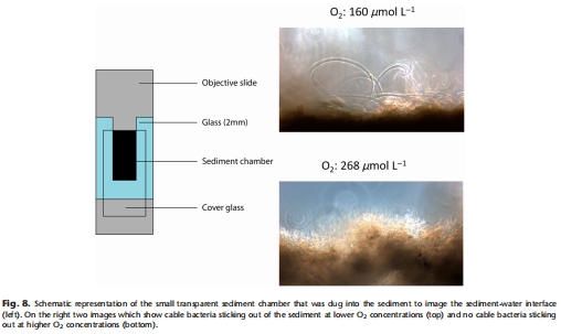 適應(yīng)性形態(tài)響應(yīng):電纜細(xì)菌在低氧下伸出沉積物(圖8),直接獲取上覆水氧氣,優(yōu)化生存策略。
