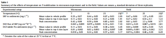 溫度對沉積物中磷流動的影響微觀實驗和田間試驗