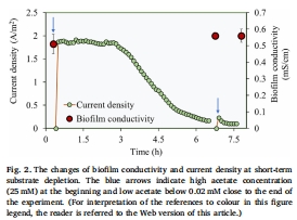 論文研究了Geobacter富集生物膜的電導率在底物限制條件下的可恢復性,重點關注生物膜電導率與產(chǎn)電菌代謝活動之間的關系。