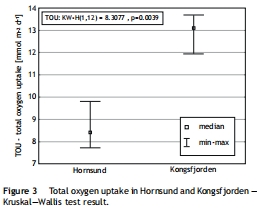 數(shù)據(jù):Hornsund 的TOU為 8.11 ± 0.87 mmol m?2 d?1,Kongsfjorden 為 12.86 ± 0.69 mmol m?2 d?1,差異顯著(p=0.0039)。