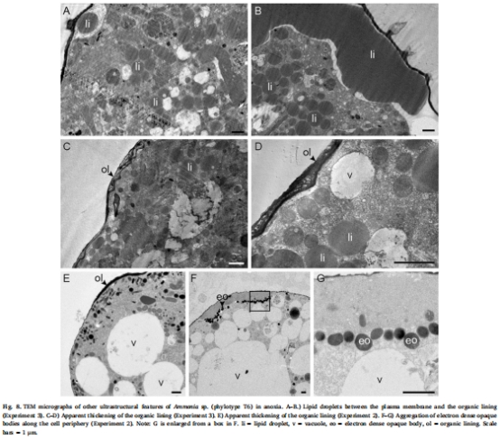 缺氧引發顯著的應激反應:Ammoniaspp. 在缺氧條件下表現出清晰的超微結構應激標志,最主要的是脂滴的積累和增大。