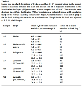 Ontogenetic and temperature-dependent changes in tolerance to hypoxia and hydrogen sulfide during the early life stages of the Manila clam Ruditapes philippinarum