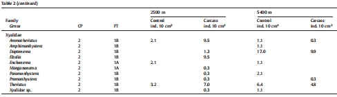 研究意義:在2500米處,食物沉降點沉積食性線蟲(1A)比例下降,而刮食者(2A)比例上升,導致營養多樣性增加。成熟度指數(MI)在食物沉降點降低,表明群落由機會主義(r-策略)類群主導。這揭示了食物沉降不僅改變了物種組成,更深刻地影響了整個群落的功能結構。