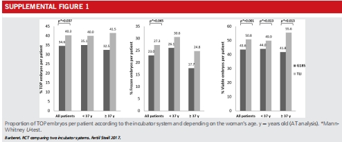 數據:展示了不同年齡組(<37歲和≥37歲)患者在兩種培養箱中獲得的優質胚胎比例。
