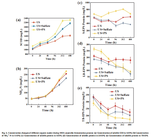 優(yōu)化厭氧發(fā)酵性能:比較不同預(yù)處理(US、US+PS、US+Sulfate)對EPS組成、有機(jī)溶解、VFA和氫氣生產(chǎn)的影響。