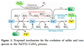 數(shù)據(jù):示意圖顯示Fe(VI)與SO?2?反應(yīng)直接生成Fe(V)/Fe(IV),同時(shí)Fe(III)和H?O?間接催化生成這些物種。