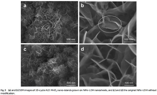 構(gòu)建可調(diào)納米界面:利用ALD技術(shù)精確控制MnO?納米島在NiFe-LDH表面的生長(zhǎng),創(chuàng)建三維納米界面以增加活性位點(diǎn)密度。