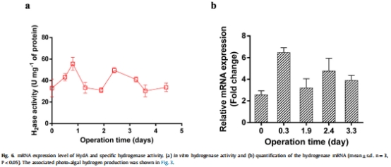 數據:Fig. 6a顯示HydA活性在氧耗竭期升高(~23 U mg?1蛋白),氧存在時降至基線;Fig. 6b顯示mRNA表達與活性正相關。