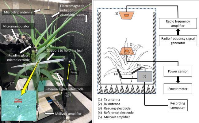 在本研究中,由于電解質含量較高且具有用作生物能源的潛力,選擇蘆薈植物作為實驗植物。此外,蘆薈植物含水量較高,整個植物含水量為98.5%,葉凝膠介質含水量為99.5%澆水良好的植物。由于組織中的水分和電解質含量較高,蘆薈植物可能對電磁輻射暴露具有較高的敏感性。基于這種垂體,我們在受控實驗室研究中研究了不同頻率微波對蘆薈植物靜息電位和受傷(火焰燃燒)誘導的VP的影響。