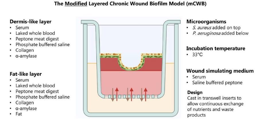 圖1、改良的分層慢性傷口生物膜模型示意圖。