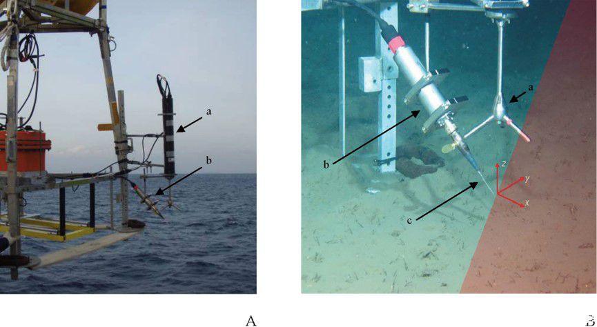 unisense渦動相關系統被用于測量深海沉積物中的氧氣攝取率。渦動相關系統的核心包括一個聲學多普勒測速儀(ADV)和一個快速響應的氧氣微電極,它們被直接安裝在一個放大器上。渦動系統上使用的是Clark型的氧氣微電極,具有內部參考和保護陰極,外尖端直徑約為5微米,能夠在約0.2秒內捕捉到氧氣濃度的突然變化。渦動相關組件被附加到一個自由下落的沉積物分析儀器上。在海底,遙控潛水器(ROV)將分析儀器定位,使渦動相關儀器指向水流方向。渦動相關數據通過將8赫茲數據降采樣到1赫茲來減少噪聲,并計算每個數據記錄周期的垂直渦動通量。