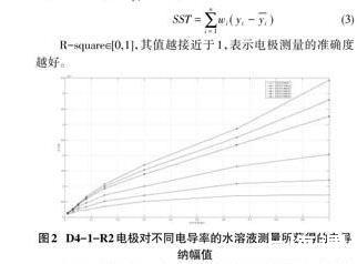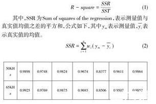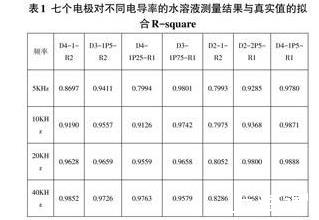 表面電極測(cè)量所獲得的電導(dǎo)納應(yīng)與水溶液的電導(dǎo)率成線性關(guān)系,線性系數(shù)與電極的參數(shù)有關(guān)。因此,我們將真實(shí)數(shù)據(jù)和測(cè)量數(shù)據(jù)進(jìn)行直線擬合,以確定系數(shù)R-square表示兩組數(shù)據(jù)匹配的程度。