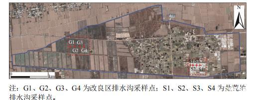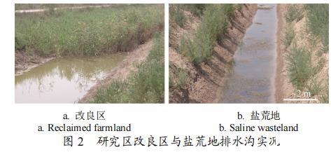 如圖1所示,2019年3月16日(春季)在陜西省富平縣鹵泊灘鹽堿化改良區(qū)(109°18′-109°42′E、34°43′-34°50′N)農(nóng)田排水溝中進(jìn)行底泥采樣,采樣剖面分別布設(shè)在上游改良區(qū)和下游鹽荒地相鄰的4條農(nóng)溝中央位置,且選取的4條鹽荒地排水溝均與外界無水力連通。研究區(qū)農(nóng)田排水溝實(shí)況如圖2所示。